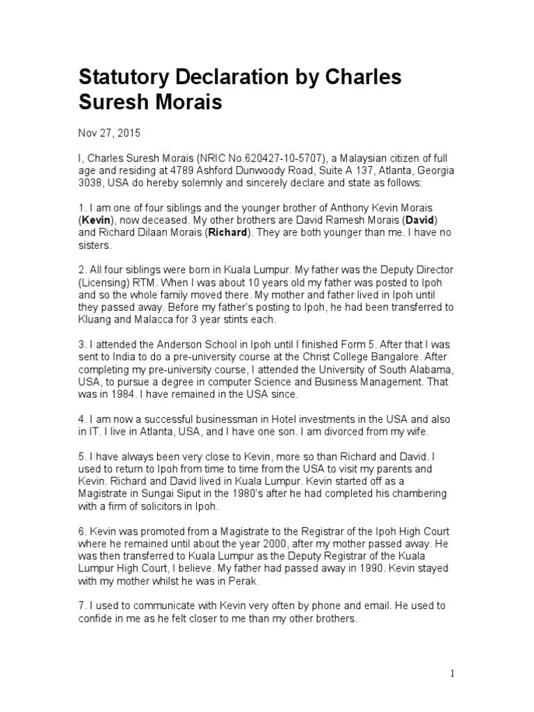 Statutory Declaration By Charles Suresh Morais Malaysia Today