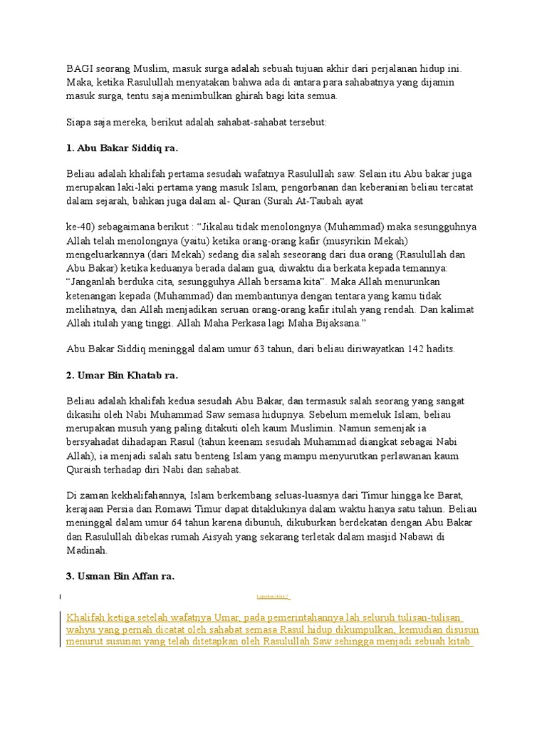 10 Sahabat Nabi Yang Dijamin Masuk Surga