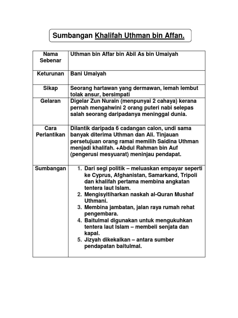 Sumbangan Khalifah Uthman Bin Affan By Nur Solehah Jalil