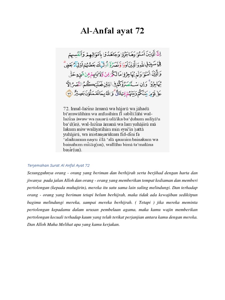 Hukum Tajwid Surat Al Anfal Ayat 72 Latin Penjelasan Arti Dan Isi