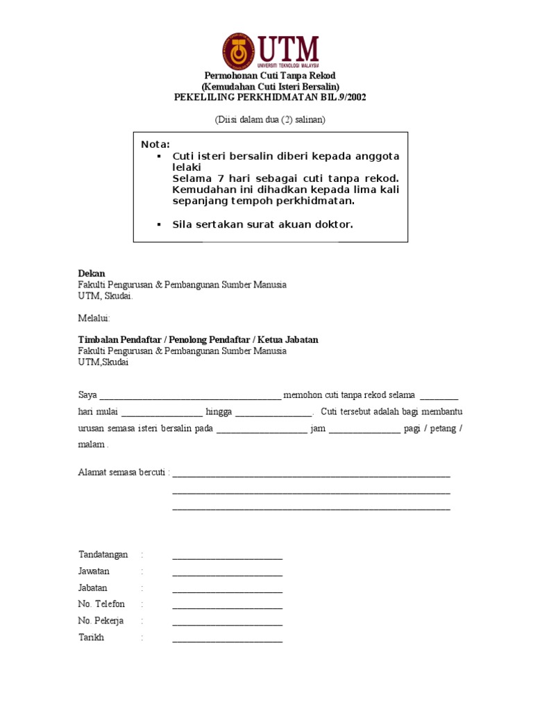 Contoh Surat Rasmi Cuti Bersalin Rasmi B