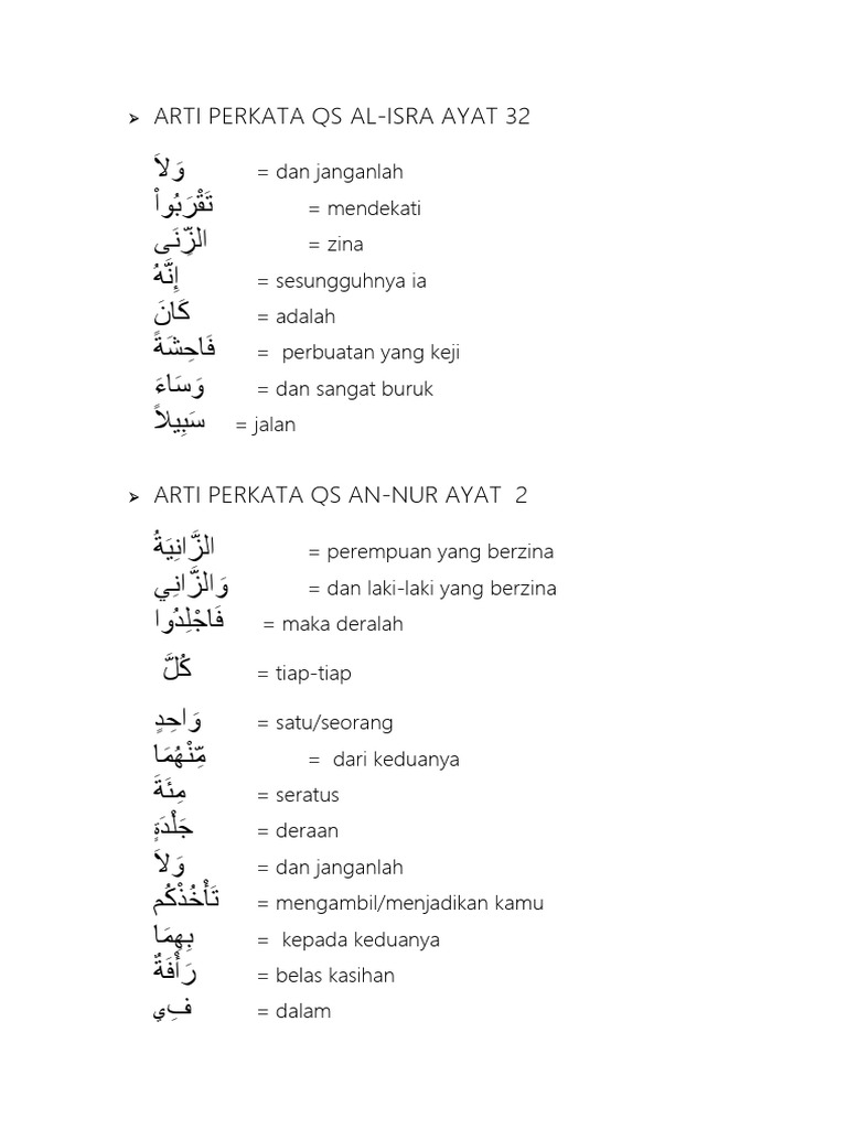 Arti Perkata Qs Al Isro Dan Annur
