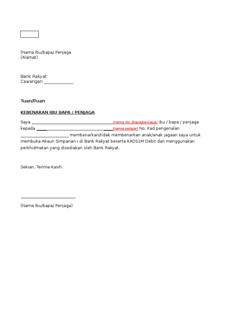 Contoh Surat Kebenaran Membuka Akaun Simpanan I Di Bank Rakyat