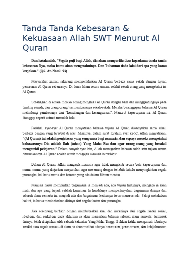 Tanda Tanda Kebesaran Kekuasaan Allah Swt Menurut Al Quran