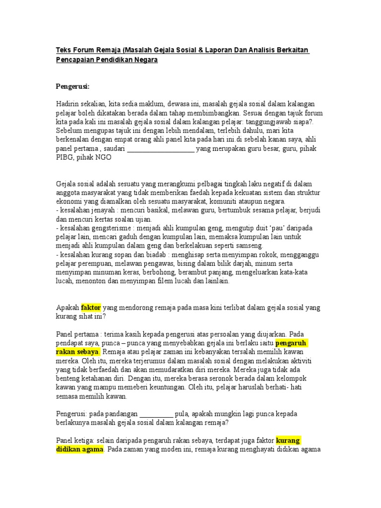 Contoh Teks Forum Masalah Gejala Sosial Rasmi B