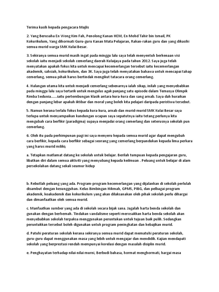 Tatacara Perhimpunan Pagi Sekolah Docx Document