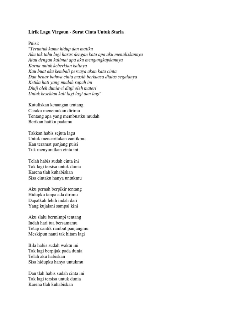 Virgoun Lyrics Surat Cinta Untuk Starla