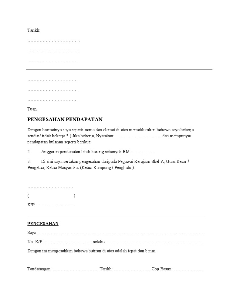 Tidak Bekerja Contoh Surat Rasmi Pengesahan Pendapatan Dari Ketua Kampung