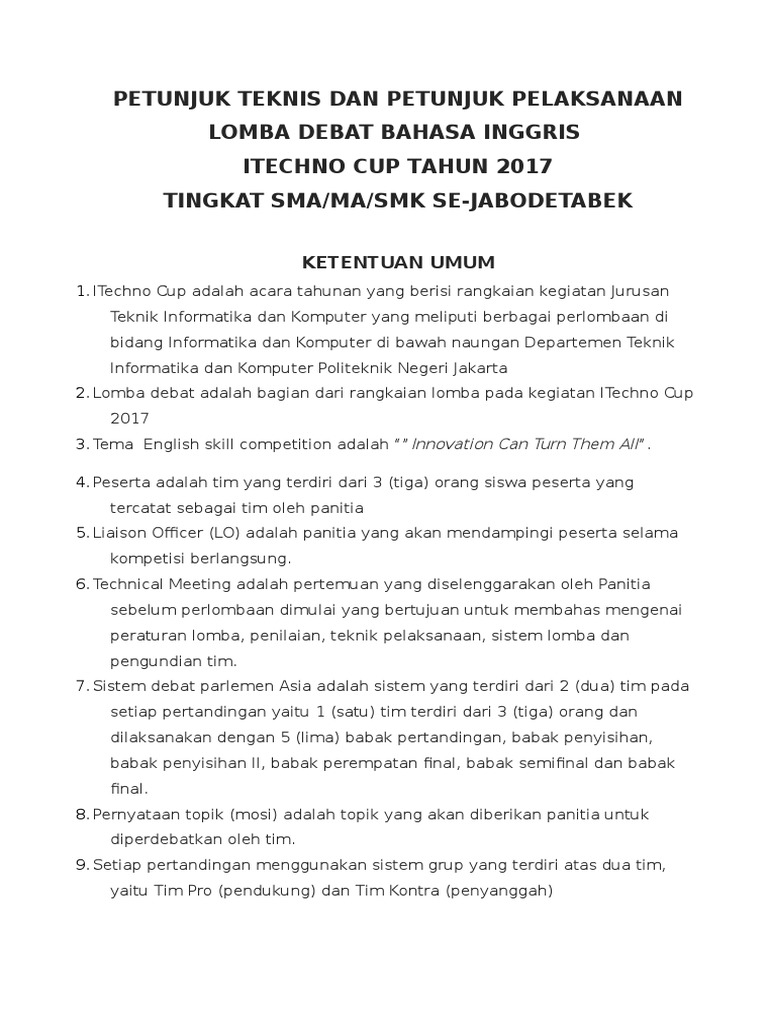 Petunjuk Teknis Lomba Esc English Skill Competition Pdf