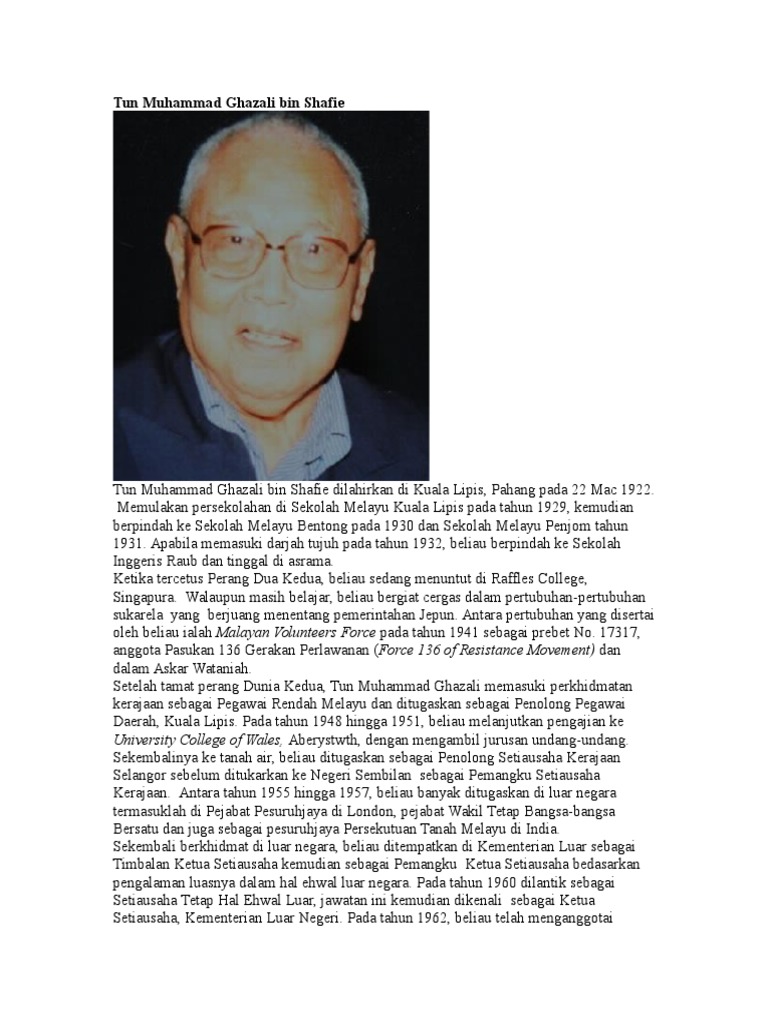 Tokoh Rao Tun Ghazali Shafei Negarawan Ulung