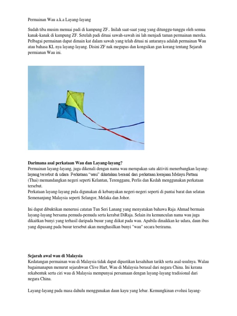 Darimana Asal Perkataan Wau Dan Layang Layang
